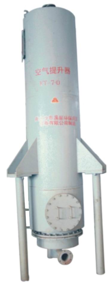 The system is made up of air elevating engine, elevating pipe, material-air separator and air supply device etc. The air headstream fill gas through bottom of elevating engine to make the transported material move upwards.